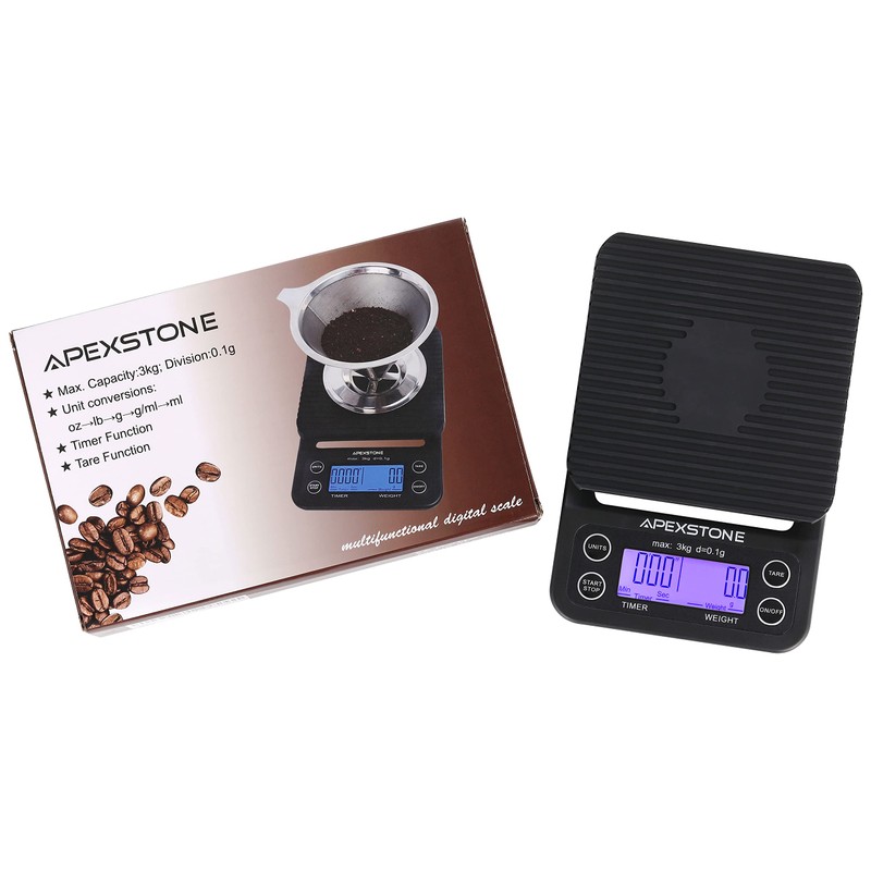 Coffee Scale with Timer Small, Apexstone Espresso Scale with Timer Small, Espresso Coffee Scale with Timer for Pour Over Coffee (Batteries Included)