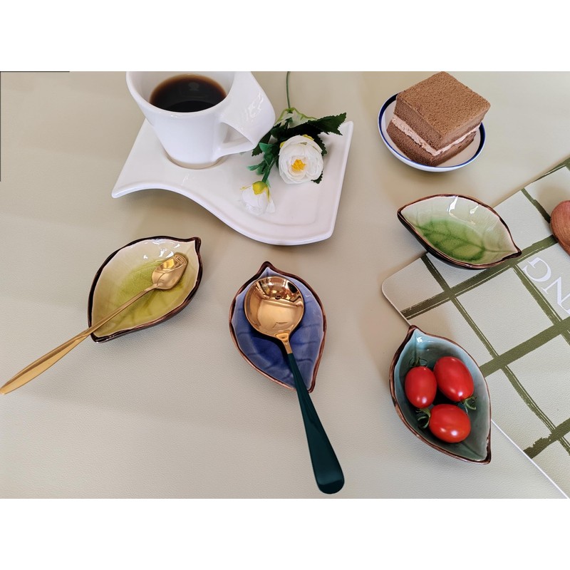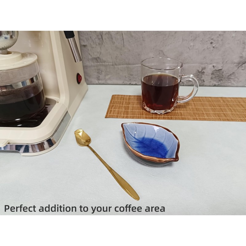 Coffee Spoon and Rest for Coffee Bar, Ice Cracks Leaf Small Spoon Rest for Coffee Station, Tea Spoon Rest Teaspoon Rest (Sapphire and Rose Spoon Set)