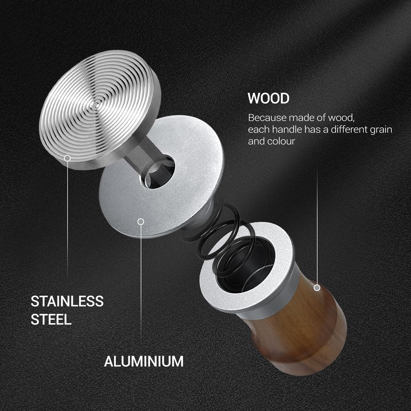 - 【Ergonomic Wooden Handle】Other self leveling tamper is made with metal and plastic handles. Our silver matte color along the base and walnut wooden handle fits comfortably in the palm of my hand. It looks nice with the wood and silver and goes well with the kitchen vibe.