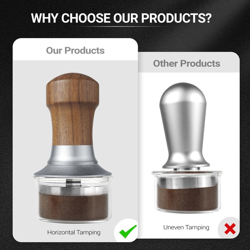 - Why choose MICXNIC espresso tamper? Traditional coffee tamp are typically made of aluminum alloy and can be prone to skewing or overtamping. Our coffee tamper 54mm designed with self leveling collar keeping the tamper level horizontally so that the downward force on the puck is even.