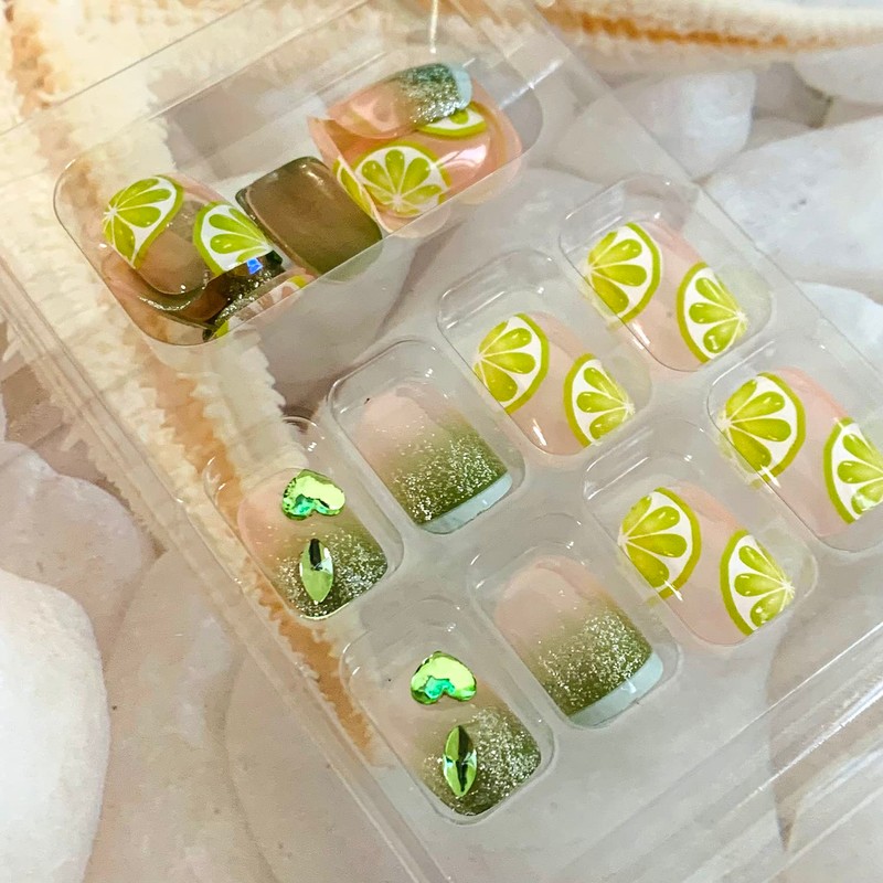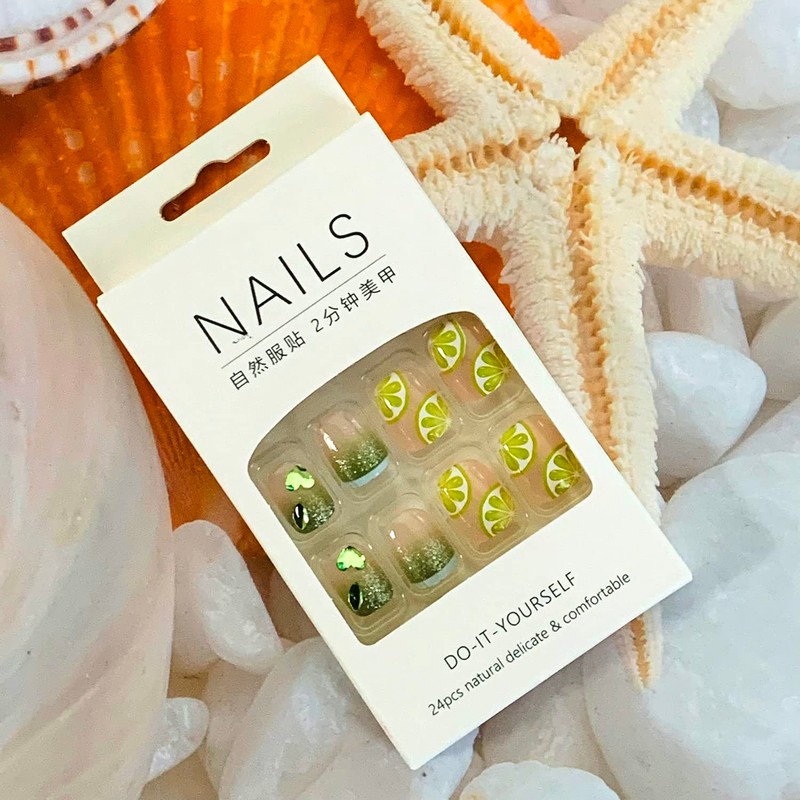 Remove the glue sticker and keep the fake nail tip for next time use.