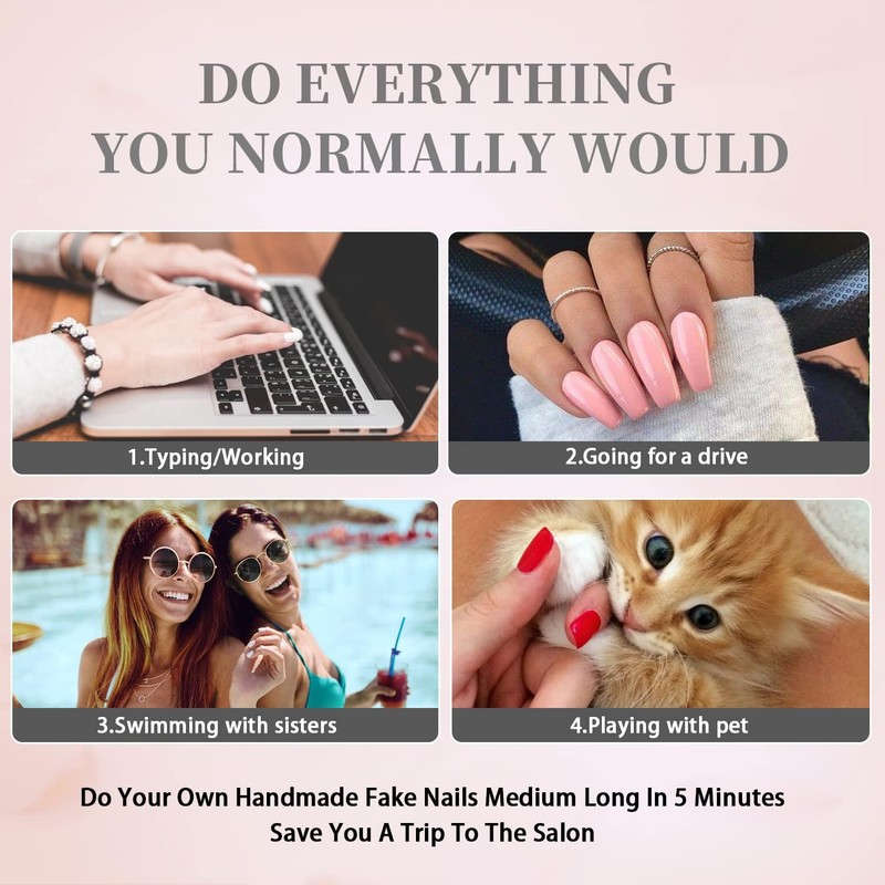 - 【❀TIP OF USE】The trick to make these medium medium coffin nails pink last 2 week+is nail prep and nail apply.Trim your cuticle back as far as possible,buff the ridges off your nail and then take your time gluing these long coffin press on square nails and nail stickers.