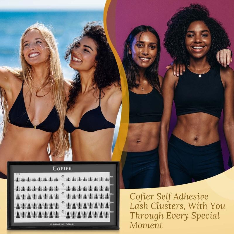 COFIER (Invisible Band ) Cofier DIY Lash Kit Press on Lash No Glue Lash Self-Adhesive Eyelash Kit for a Seamless Look, Beginner-Friendly Individual Lashes with Tweezers 80 PCS Makeup - Specification: Vivid (C-curl/80pcs)