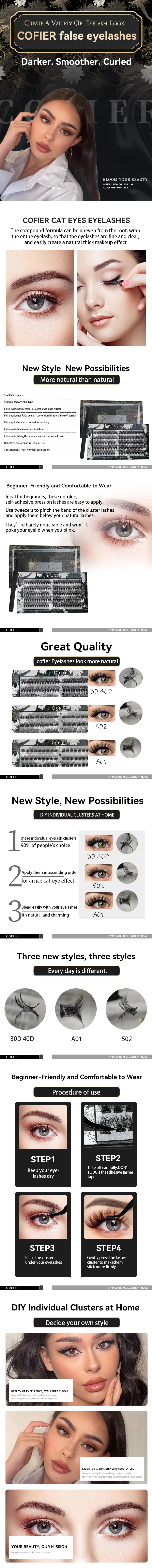 【Great Quality】: Cofier cluster lashes look natural, not plasticky, and are reusable with proper care. They’re easy to remove and won’t break when taken off the backing with tweezers. These lash clusters last for weeks. They’re soft, lightweight, vegan, knot-free, and have a matte dark finish.