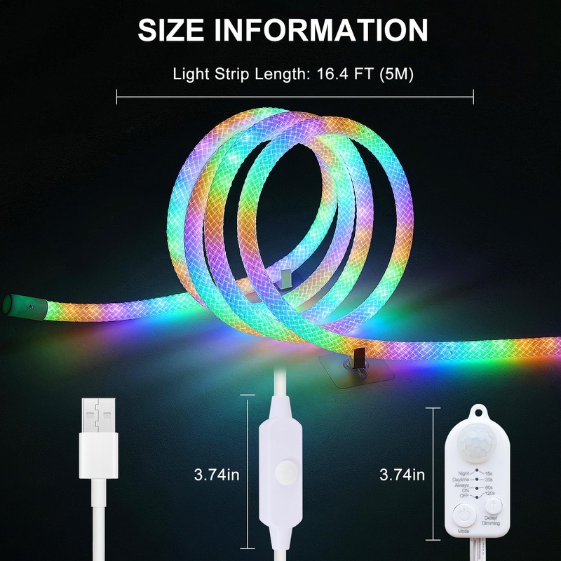 Cofiveevo Indoor unidirectional Motion Step Lights, 5V USB Human Body Sensing Staircase Light, Equipped with dimmer and Timing Function, Suitable for Staircase handrails, bedrooms, corridors (16.4ft)