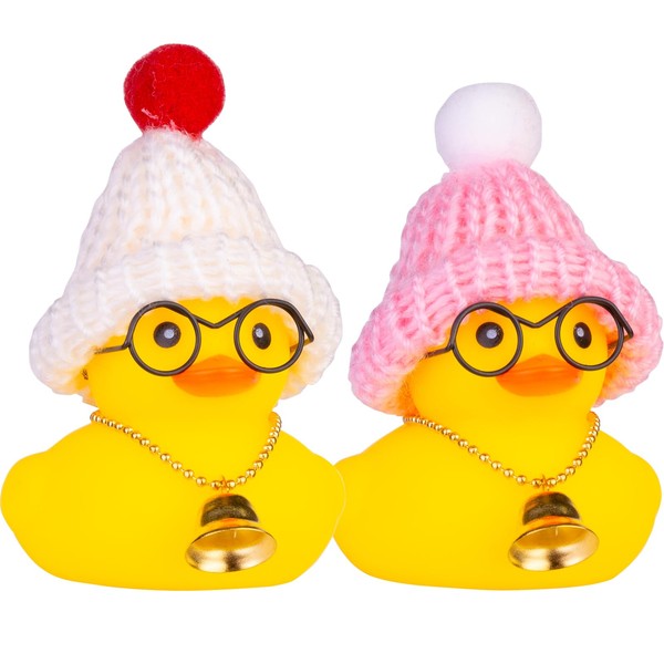 CoFuBcad Car Rubber Ducks Dashboard Decoration 2 Pack Winter Ducks Car Ornaments Accessories with Mini Beanie Hats, Necklaces and Sunglasses(G3)