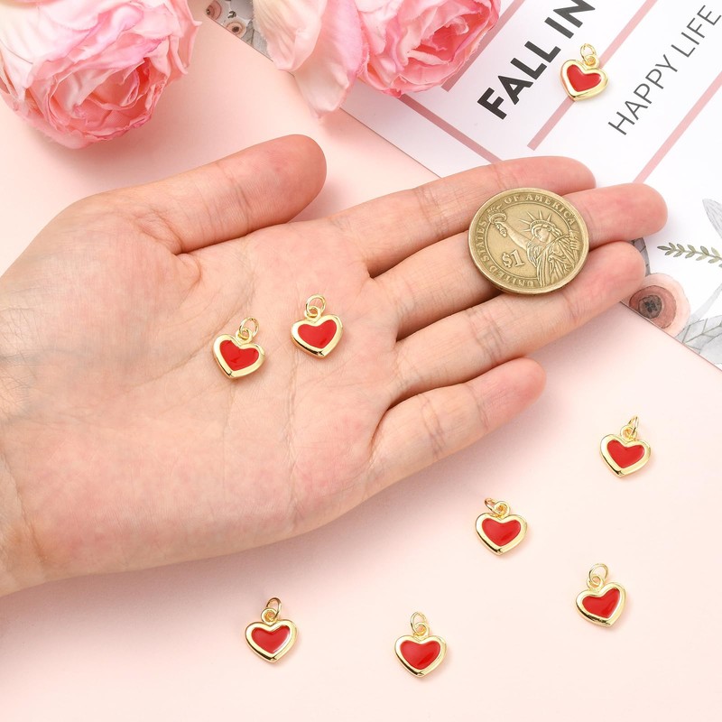 COGCHARGER 10Pcs Heart Charms for Jewelry Making Cute Small Charms Brass Enamel Pendants for Bracelet Necklace Earring Keychain DIY Supplies(Heart 1)