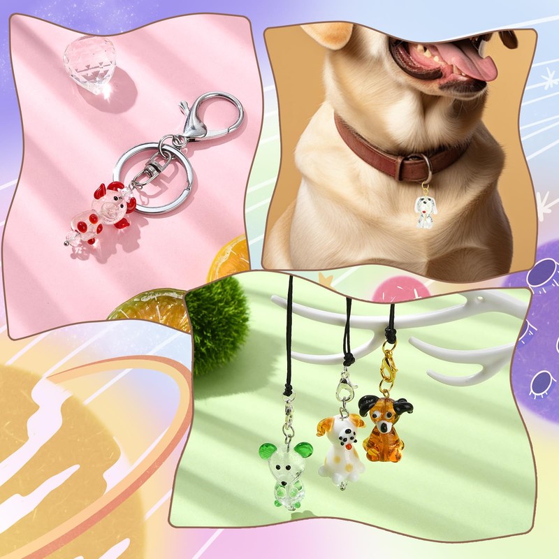 COGCHARGER 12 Pcs Handmade Bumpy Lampwork Beads Dog Animals Lampwork Glass Beads 6 Styles Lampwork Beads for DIY Jewelry Making Craft