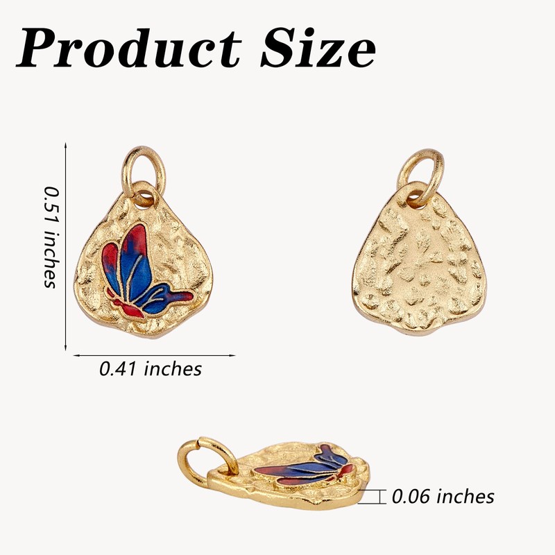 • Product Quantity: You will receive 6pcs brass butterfly pendant, about 0.43 inch(11mm) wide, 0.49 inch(12.5mm) long, 0.06 inch(1.5mm) thick, single circle: 0.20x0.03 inch(5x0.8mm), 0.13 inch(3.4mm) inner diameter