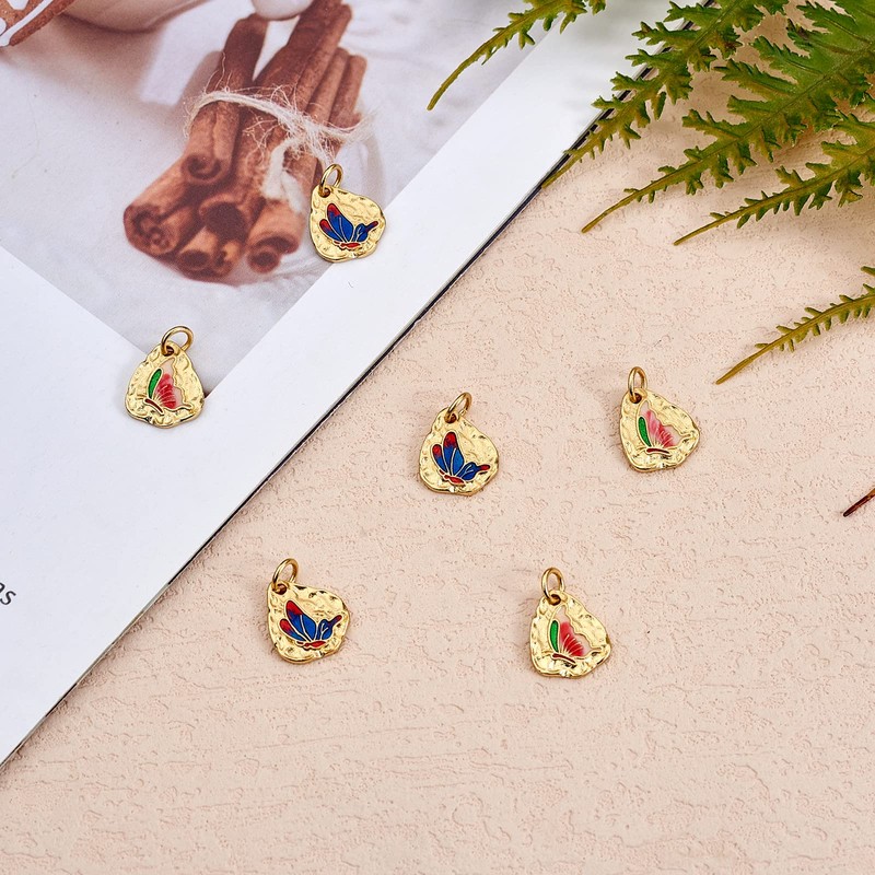 COGCHARGER 6 Pieces Enamel Butterfly Charm Pendant Flat Round with Butterfly ...