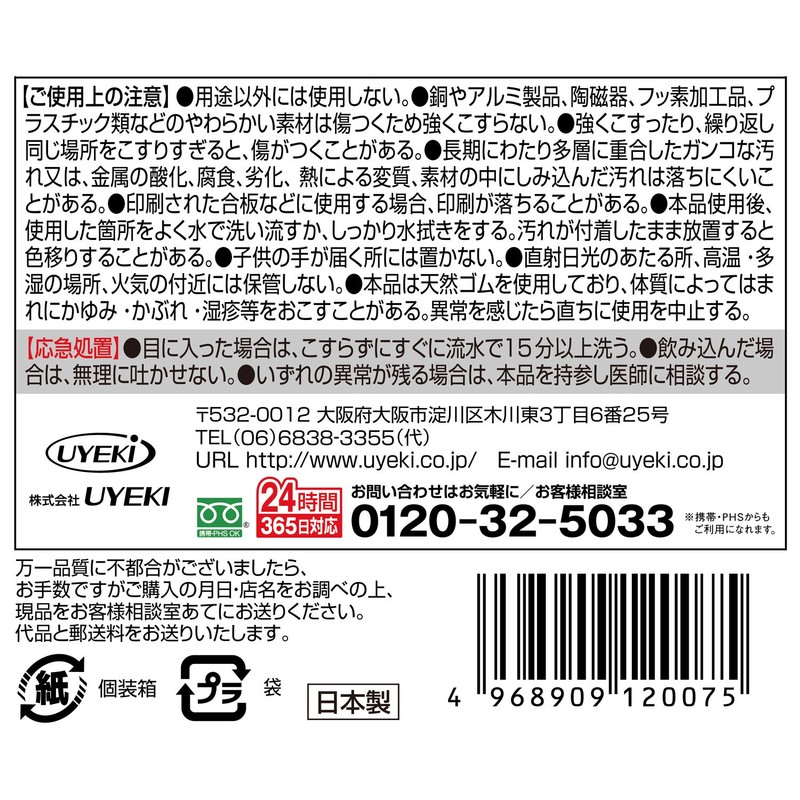 - Ingredients: Abrasive (glass powder), natural, synthetic rubber, coloring agent