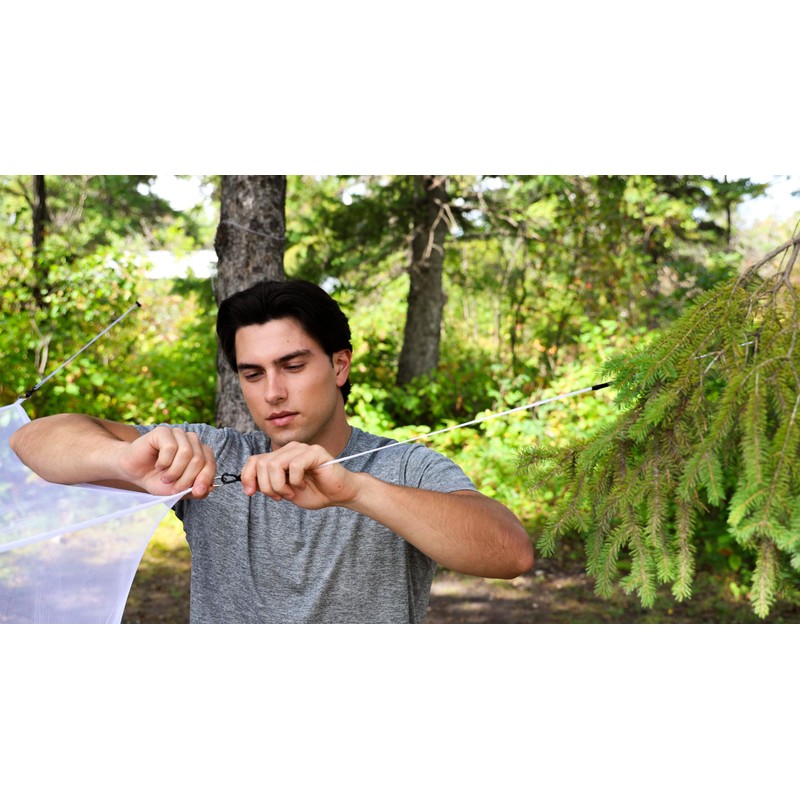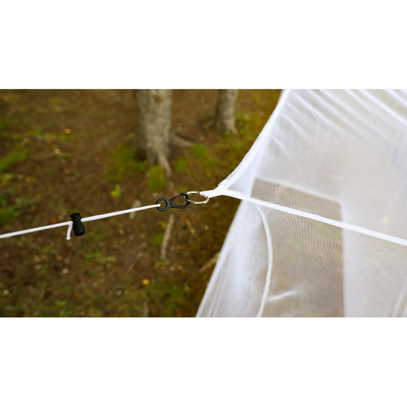 • Fine white 180 mesh polyester netting with floor base completely covers a single wide sleeping bag or cot.