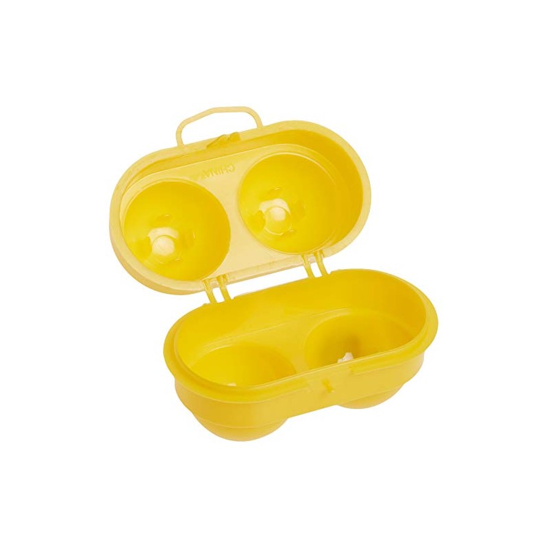 A compact egg carton. In this egg box, 2 eggs can be transported with optimum protection. This makes it easier to take a boiled egg on the go, or during your outdoor activity. This egg carton provides a compact and durable solution to keep eggs intact during outdoor activity.