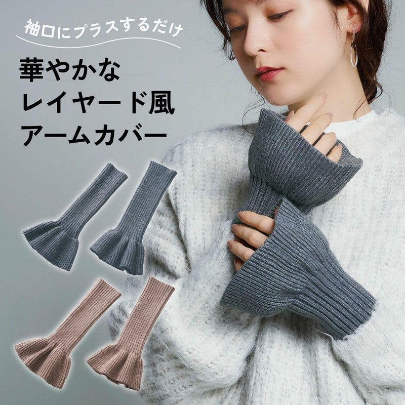 Cogit Anti-Cold Arm Cover, Ribbed Material, Glamorous Layered Style, Flare Arm Cover, Mocha