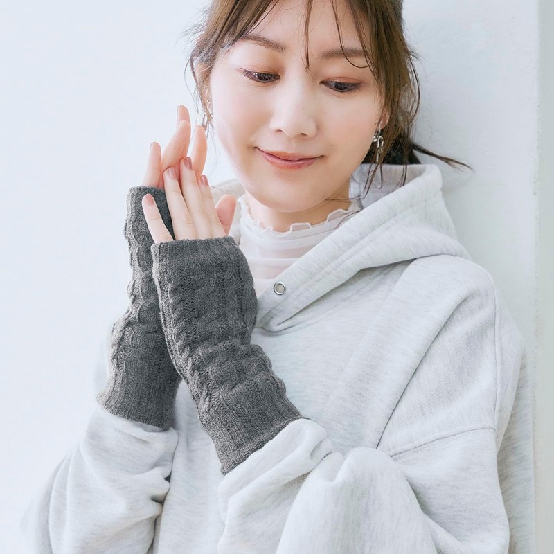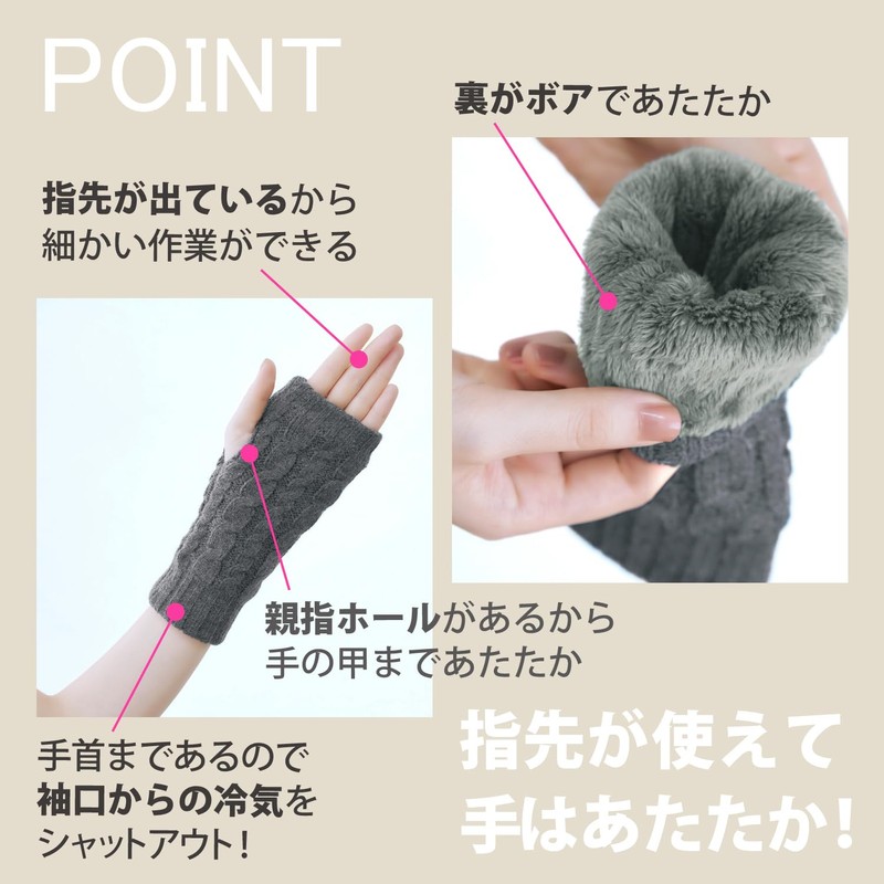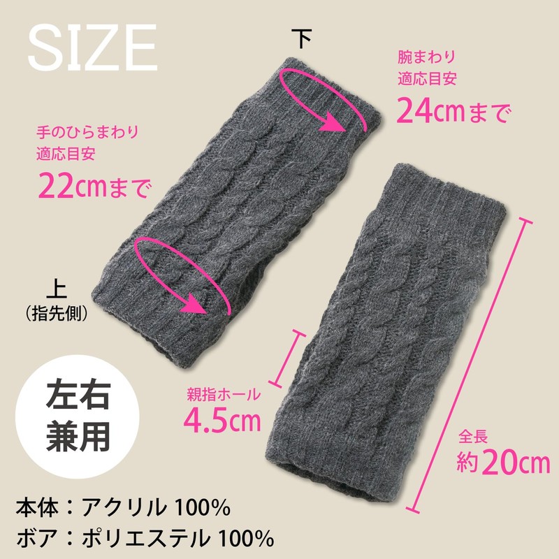 - Stylish arm cover with boa back and cable knit. The back is warm with boa