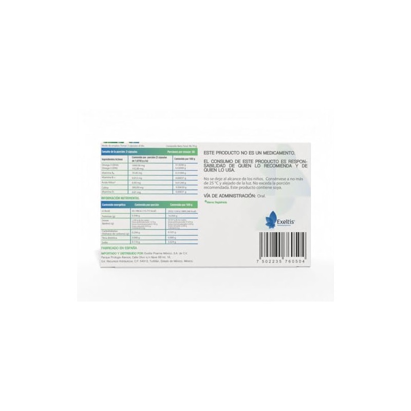 Cognexel: Colina, Omega 3 (DHA 1000 mg, EPA 142.80 mg) y Vitamina D