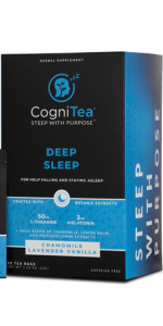 CogniTea Deep Sleep Tea with Melatonin, L-Theanine, Valerian, Chamomile, Lemon Balm and Passionflower for Night Time Rest
