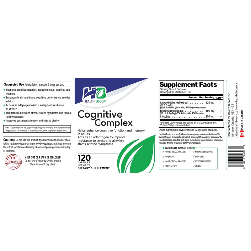 Cognitive Complex | 120 Capsules | Health Bloom | Vitamins and Minerals Capsules |