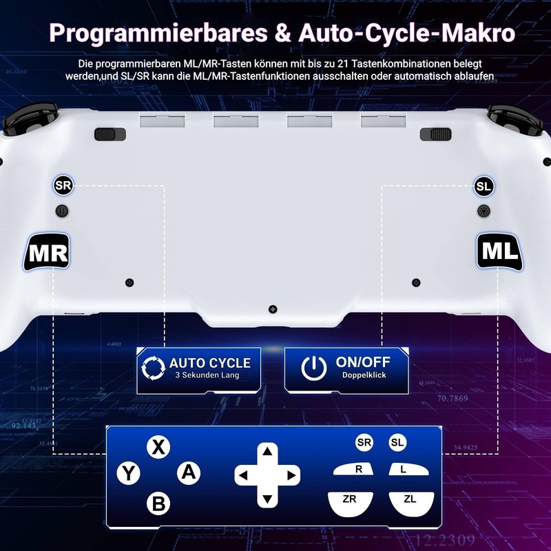 - Hall Effect & Programming Function The switch controller enhances the Hall joystick based on electromagnetic induction, allowing you to control the character in the game more precisely and smoothly. At the same time, there are 3 turbo speeds. You can adjust the turbo speed to 5/12/20 times per second depending on the requirements of different games, providing a more exciting speed experience.