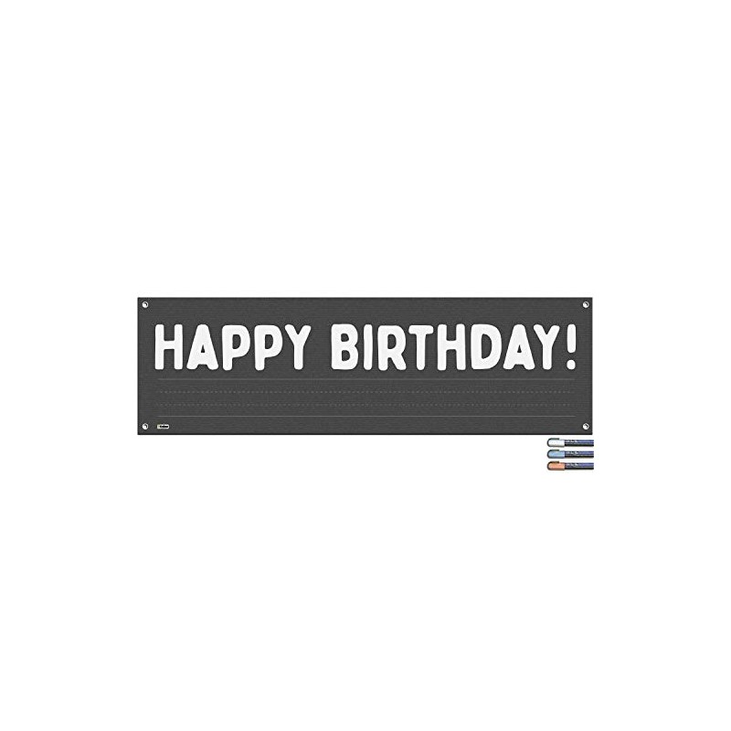 Cohas Blank Happy Birthday Banner includes 16 by 52 Inch Vinyl Banner with Metal Hanging Rings, Additional Text Guidelines, and 3 Pastel Markers