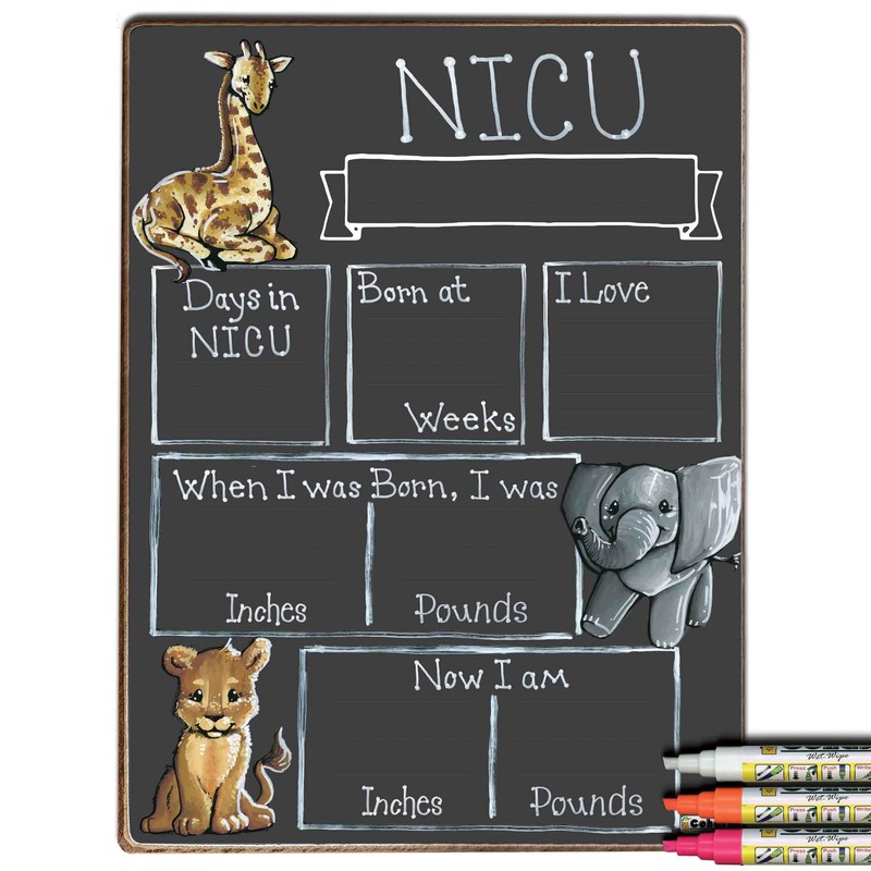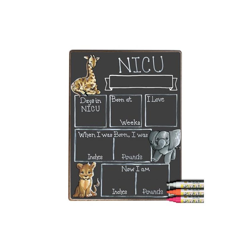 - NICU milestone boards are perfect for watching babies grow over the first few months of their life. This board features a chalkboard style surface with real chalk art. Perfect for commemorating baby's growth over their stay in a hospital's neonatal care unit and celebrating their accomplishments when they finally get to go home!