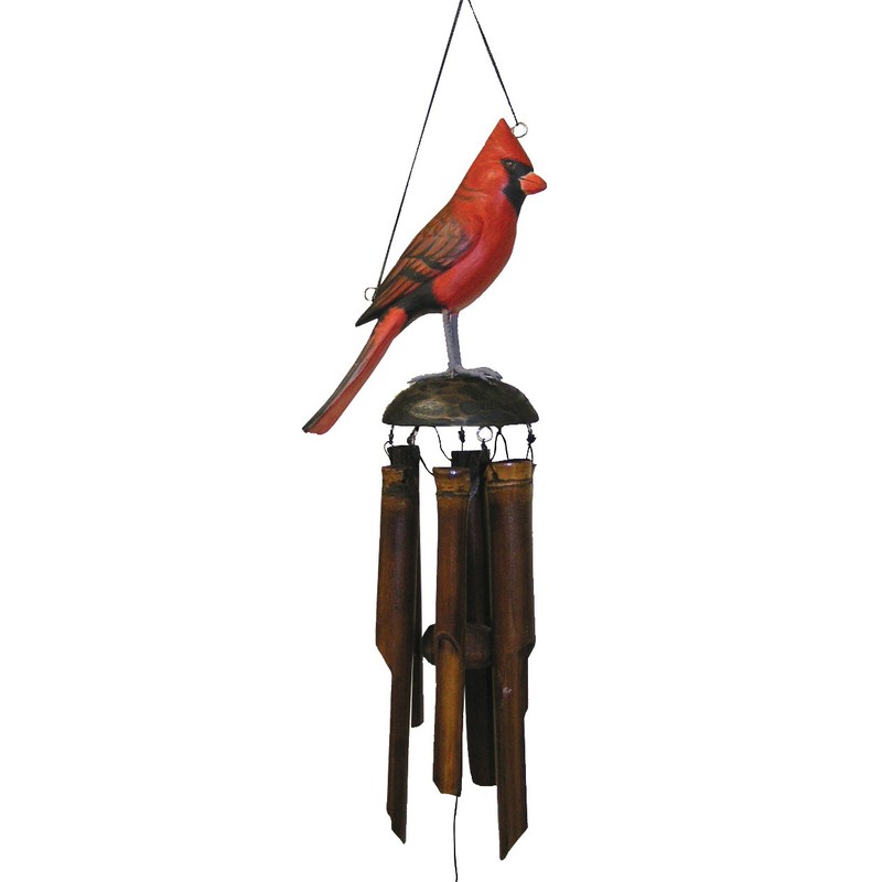 Enjoy the low resonant tones of bamboo tubes gently rustling together creating a breezy island symphony that relieves stress and soothes the soul. Beautifully hand crafted wooden Cardinal bamboo wind chime. This gift is sure to please any bird fancier. Add the quiet calming sounds of nature to your favorite outdoor retreat today.