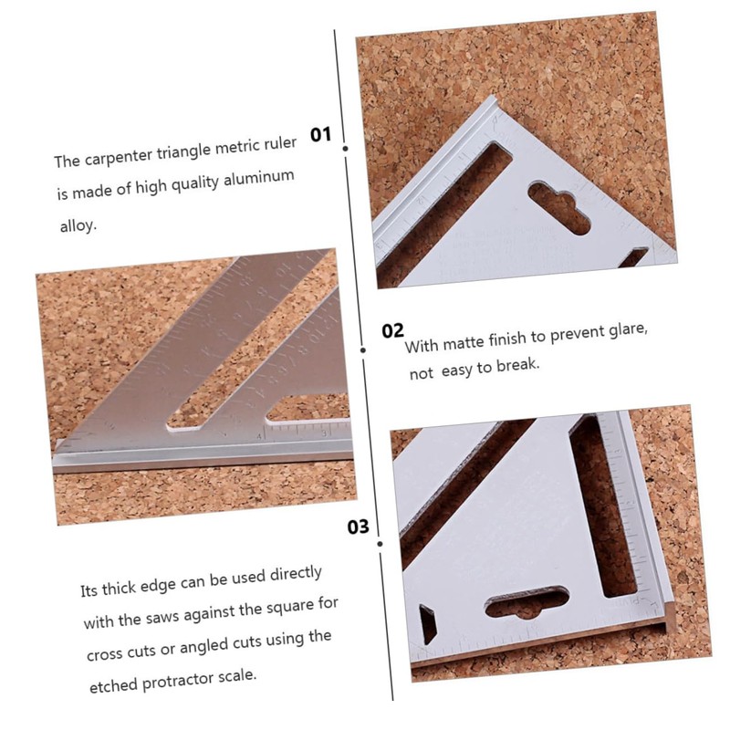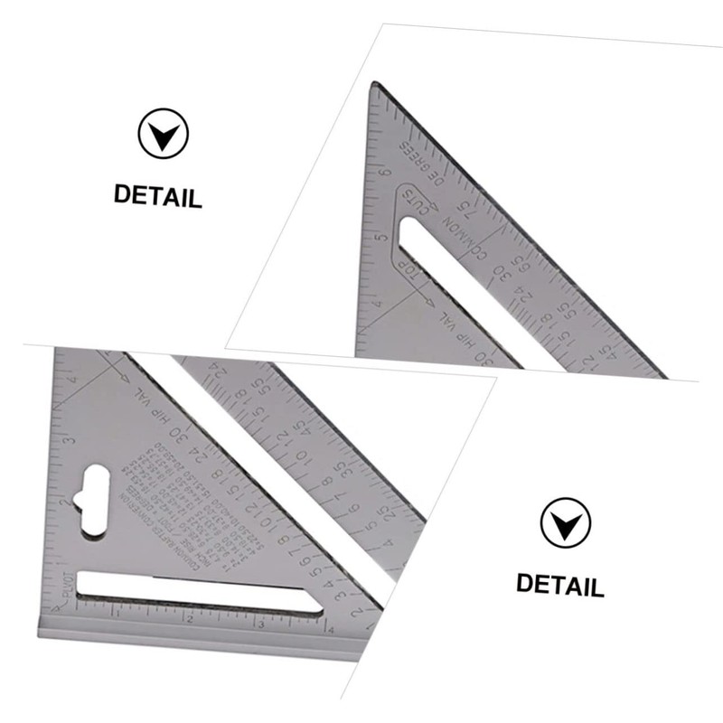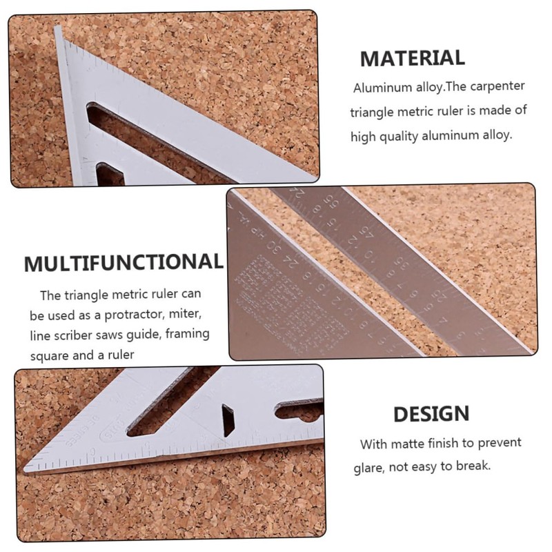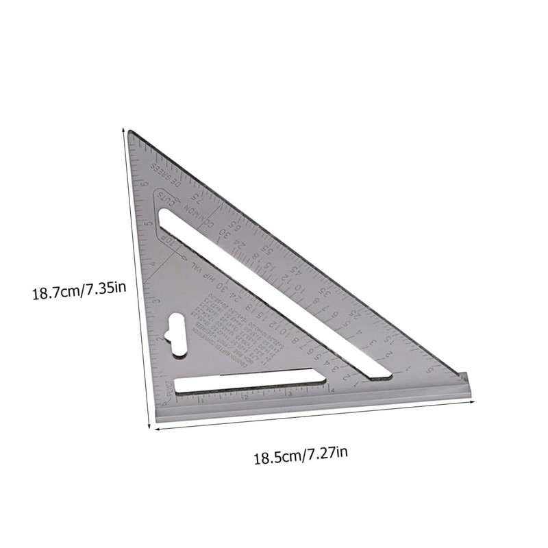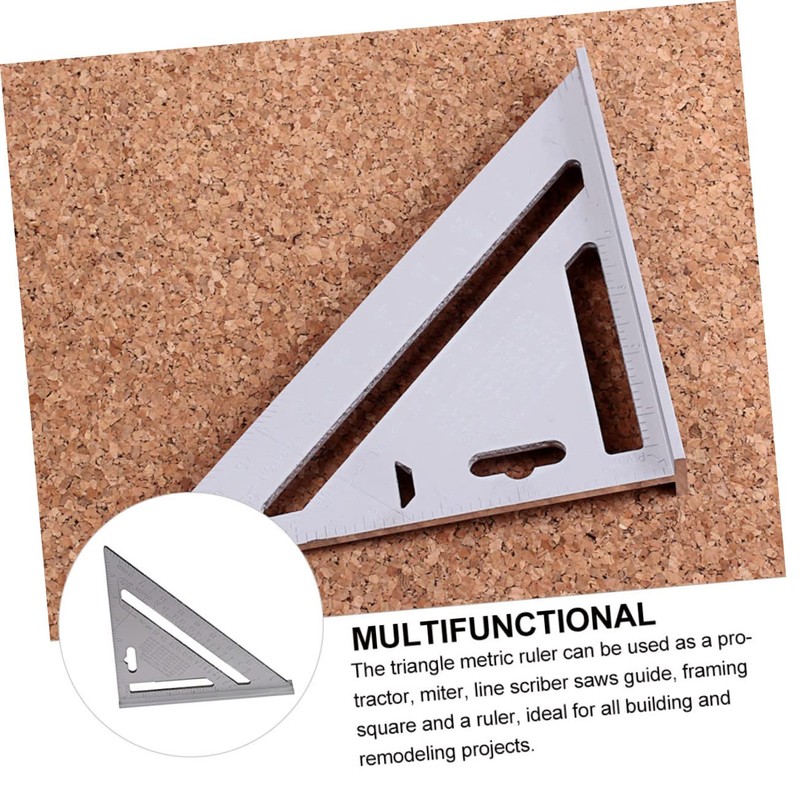Hand Tools Supplies Lipped for secure locating.Measuring Ruler Metric system measurement.Triangle Ruler Manufactured from strong aluminium.Woodworking Measurement Tool Suitable tool for framing, roofing, building and remodeling projects.Metric Triangle Protractor -square, meter square, protractor, line scriber and saws guide one tool