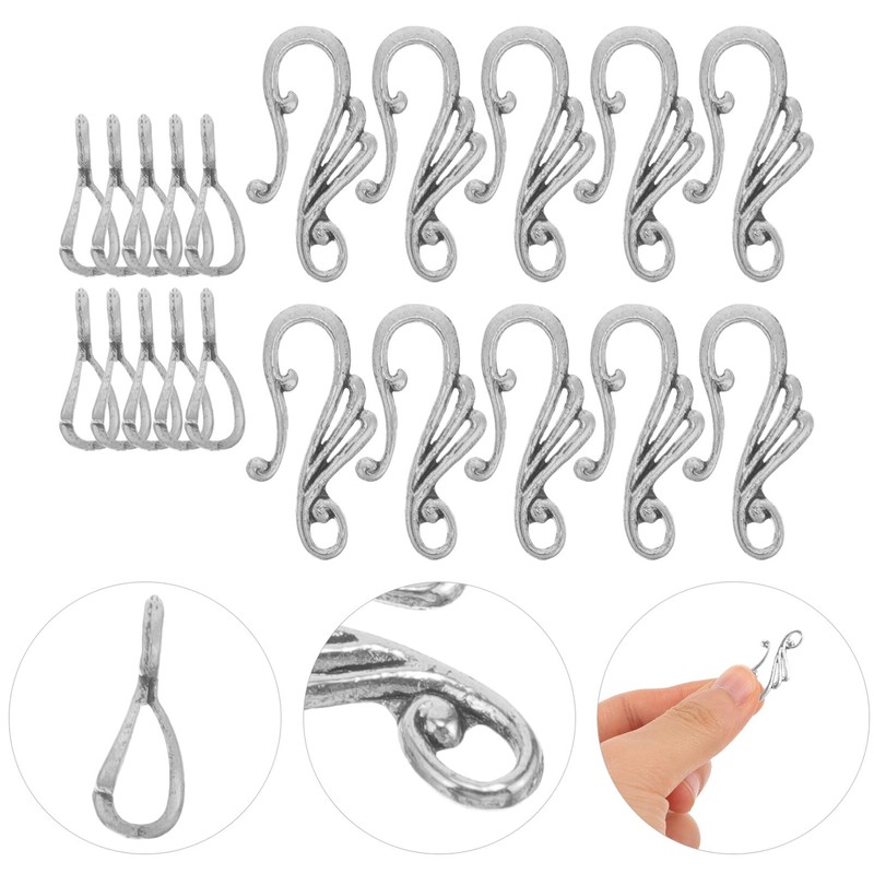 COHEALI S Ring Toggle Clasps 10 Sets Drop Silver S Hook Ring Jewelry Clasps Ring Clasps Connectors for Necklace Bracelet Jewelry Making DIY Crafts - Silver