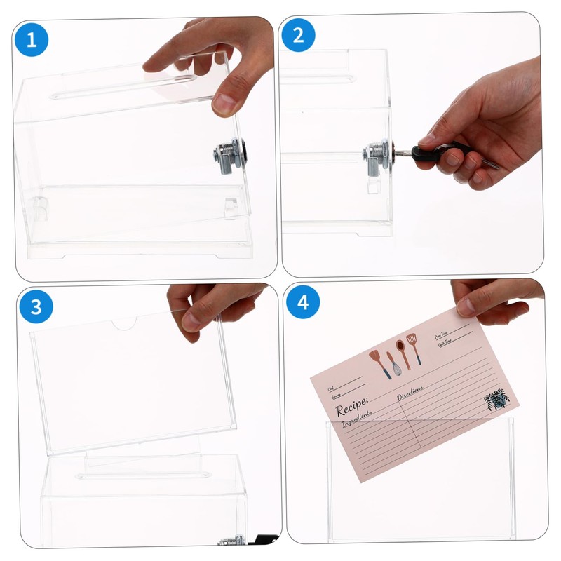 Suggestion Box with Lock, Acrylic Donation Box with Slot, Clear Ballot Box with Sign Holder, Business Card Storage Container for Voting Charity Money