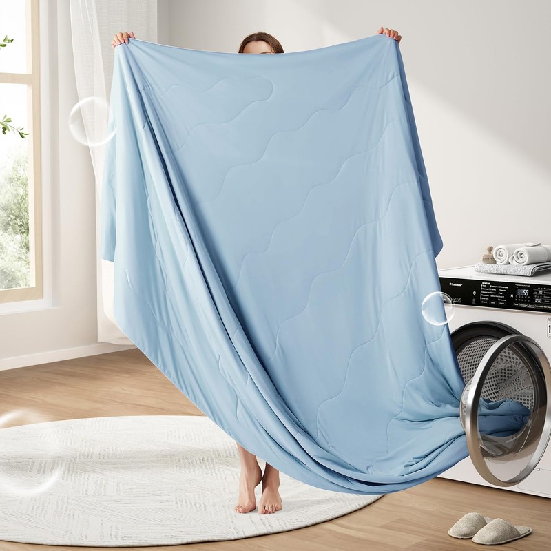 • 【Easy Care Instructions】 Our Cooling Comforter is machine washable for easy cleaning. Wash it separately with a laundry bag to avoid any potential scratches. Do not bleach or iron the blanket, and hang dry instead of tumble drying to prevent damage to the cooling fiber