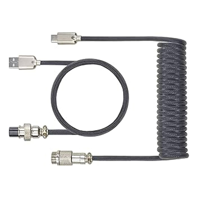 Coiled Gaming Keyboard Cable,Black Coiled Keyboard Cable USB C to USB A for PC Cable Mechanical Keyboard,1.5M Custom Metal Aviator Coiled Cable
