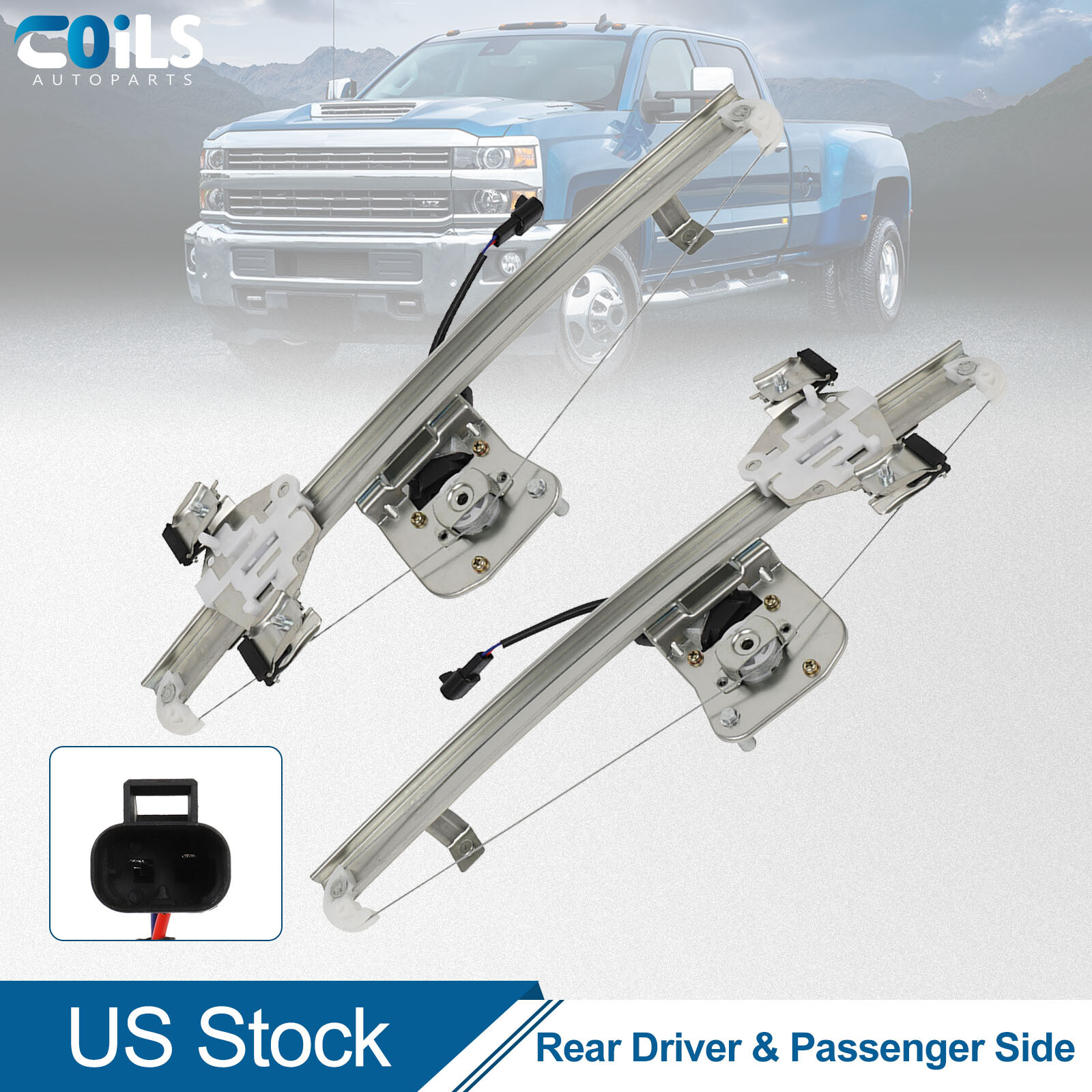 coils-autoparts For 2011-2013 Silverado 2500 Extended Cab Pair Rear Window Regulator with Motor