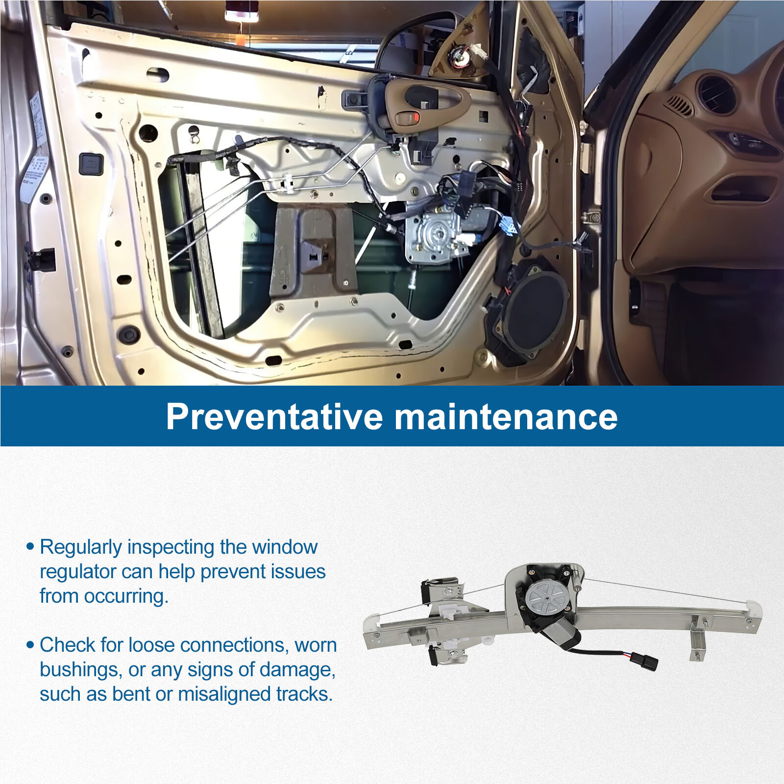 • Trustworthy replacement - engineered and tested to match the fit, function and performance of the original window regulator on specified vehicles