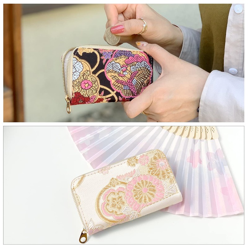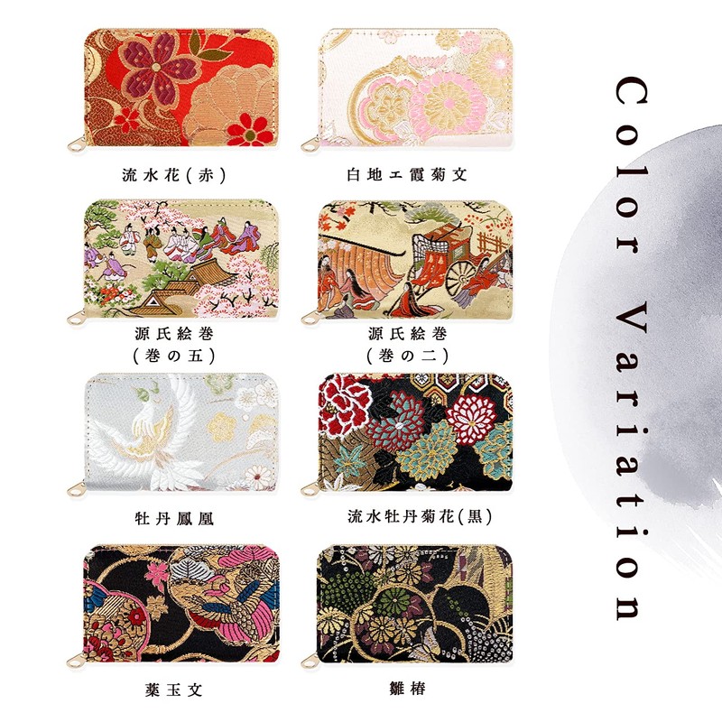 Coin Case, Round Zipper, Pouch, Small Wallet, Coin Purse, Coin Case, Compact, Women's, Kimono, Gorgeous, Nishijin Textile, High Beauty, Minamoto Painting Scroll (5 of Rolls)
