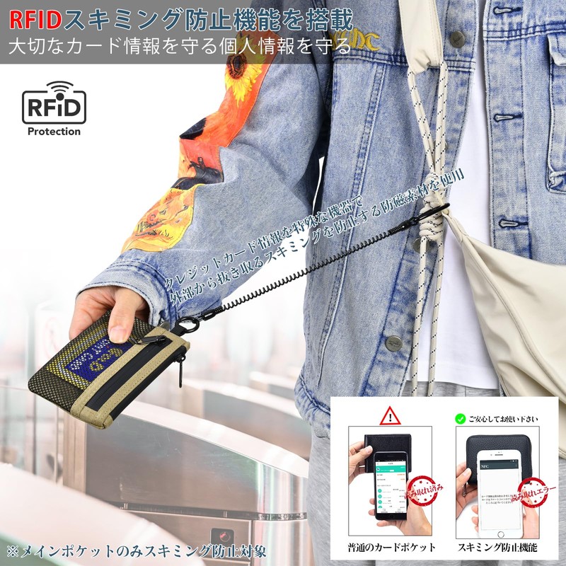 - Smart and minimalistic wallet with pursuit of security: You can carry your money, credit cards, keys, and coins from overseas travel to everyday situations. Use the included keychain to increase security and move with confidence. Comes with a carabiner so you can hang it on the waist belt compartment and fit it in your pocket. To use, take the pass case out of the pocket and reach out, the spiral cord stretches out for instant access. ★ Please note that spiral cords may be damaged if pulled too hard