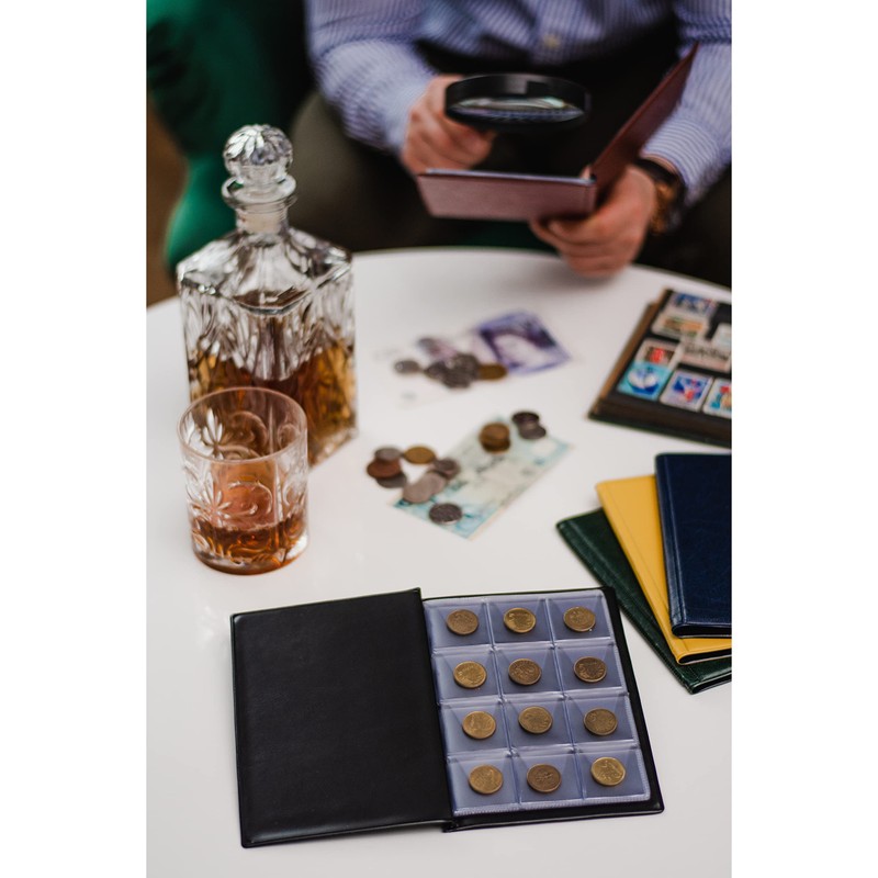 - Sizing And Color Information – Our coin collection album is available to purchase in a choice of 5 colours; Black, Blue, Burgundy, Green or Brown. Each coin album measures 12,5cm x 17,5cm and the pocket size per coin are 10x 35mm x 35mm.