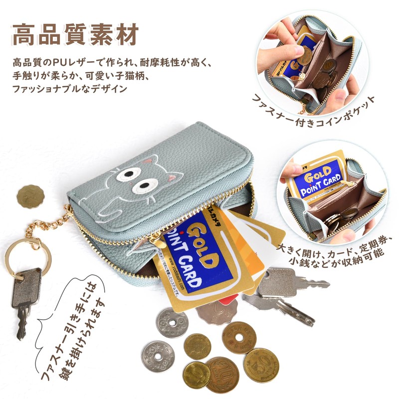 Coin Purse, Cute Cat Head Pattern, Coin Purse, Women's, Handheld, Keyring, L-Shaped Hassner, Large Capacity, Women's Thin Money Clip, Simple, Commuting to Work or School, Everyday Use, Popular,