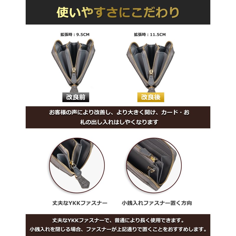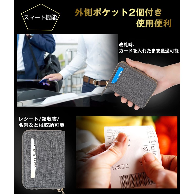 - (Easy to Use) The free pocket opens larger than the front, making it easy to insert and remove cards and bills. Uses a durable YKK zipper, so it can be used longer than regular zippers. The outside of the mini wallet has 2 card pockets, so you can pass through the gates while holding a traffic IC card, and also store receipts, receipts, business cards, etc
