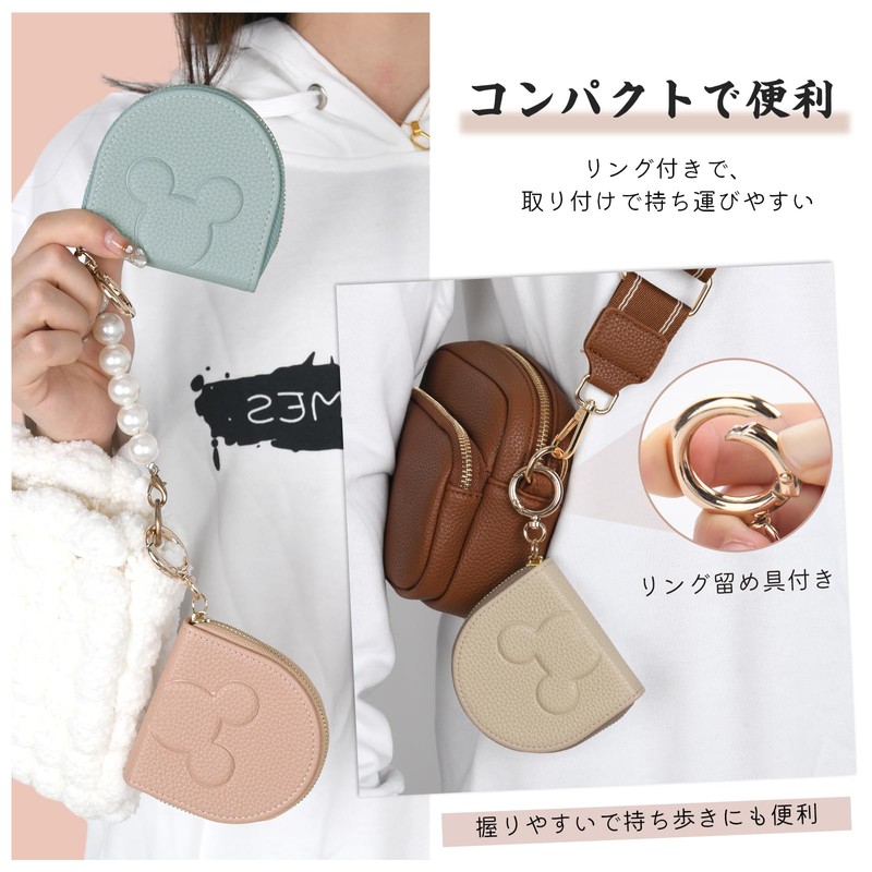 - (Cute and mature design) This mini pouch has a high level of elegance and an elegant impression. The gold-colored zipper and leather texture create an elegant look. Palm-sized to fit in your bag. In addition, it opens wide to reveal contents at a glance. Reliable zippers and lining for durability and longevity. Made of fine leather. Textured grain leather that is scratch resistant