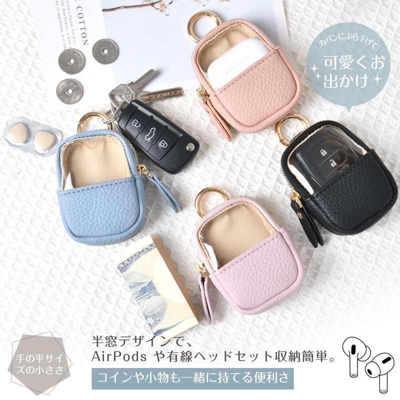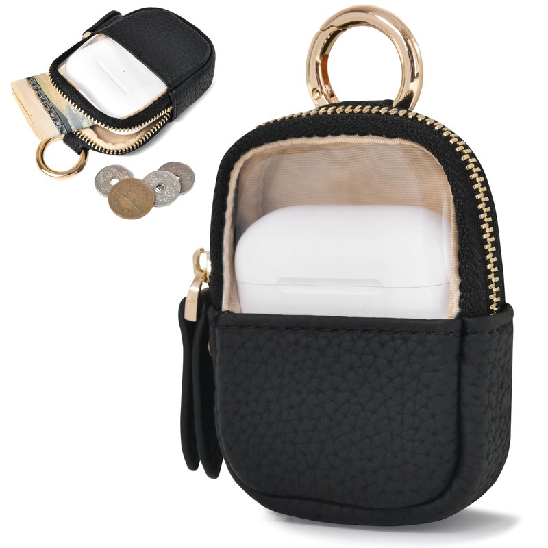 Coin Purse, Women's, Coin Case, Men's Headphone Case, Leather, Key Case, Key Ring, Mini Wallet, Compact, Hand-Held, Easy to Use, Small Items, Seal Case, Headphone Carrying Storage,, B Black