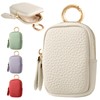 Coin Purse, Women's, Coin Case, Men's Headphone Case, Leather, Key Case, Key Ring, Mini Wallet, Compact, Hand-Held, Easy to Use, Small Items, Seal Case, Headphone Carrying Storage,, white (off-white)