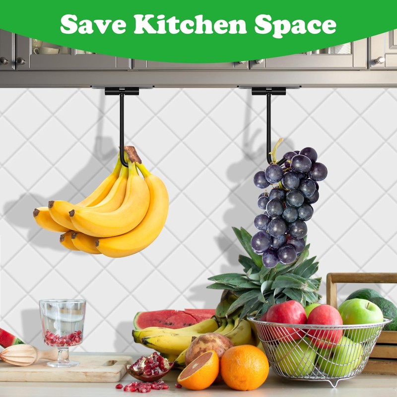 - Save Kitchen Space: Self adhensive banana hooks can hang fruits such as bananas and grapes, making the kitchen countertop cleaner and looking more orderly