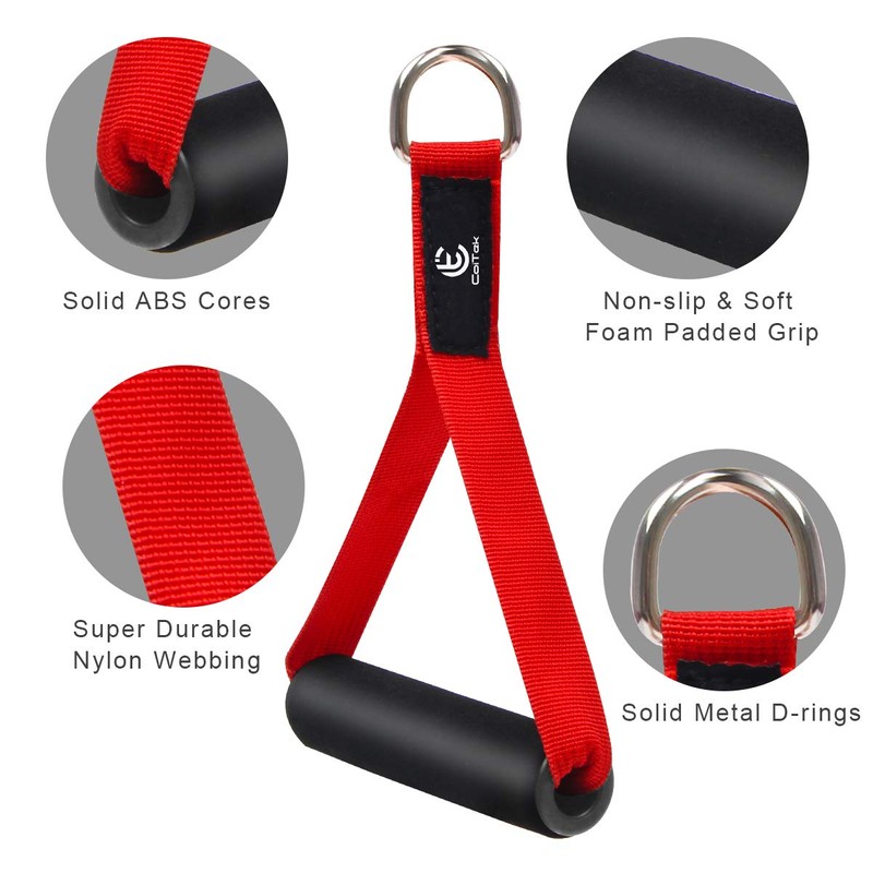 COITEK 2 Pair Resistance Band Handles Grips Fitness Strap Wide Design Heavy Duty Cable Handles with Solid ABS Cores, Durable Carabiners with Heavy Gauge Welded D-Rings (Red)