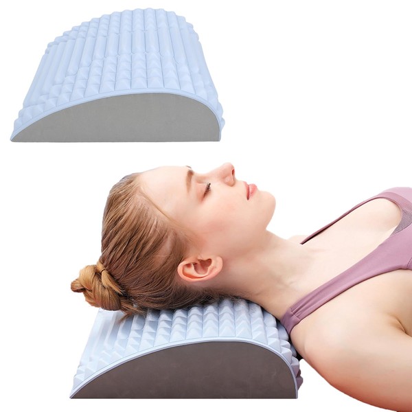CojíN de Estiramiento de la Espalda del Cuello para Aliviar el Dolor de Espalda del Cuello, Relajante de Soporte del Cuello, Camilla de TraccióN Lumbar Azul