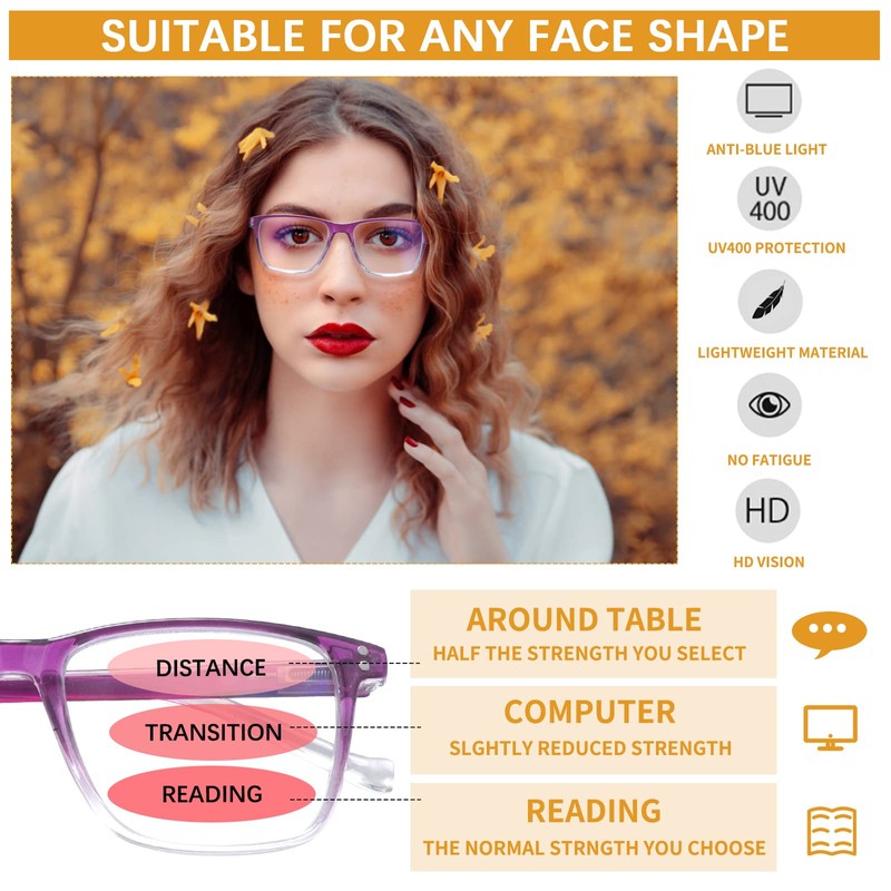 - 【3 PACK PROGRESSIVE MULTIFOCUS READERS】:Set of 3 pack stylish blue light blocking Progressive reading glasses, you can place a set of glasses where you need to read, which is convenient for daily use or which can be a exquisite gift sending to your families and friends.