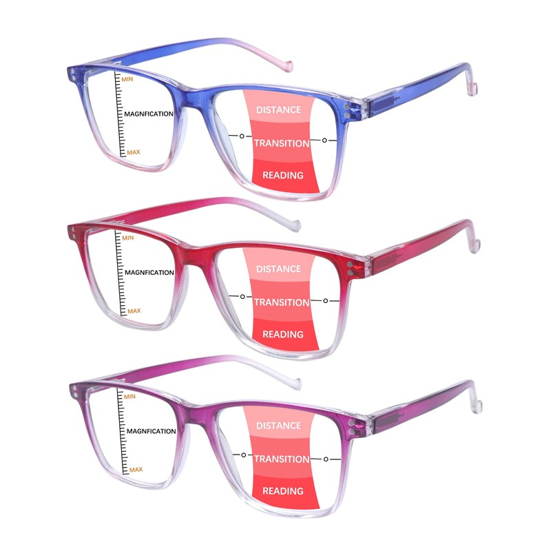 - 【THREE LEVELS OF VISION】 :Progressive multifocus glasses for all your need. Top part is half-power magnification for walking, shopping. The middle part is slightly reduced power magnification for working on computer, watching TV, etc. The bottom part of the lens is full-power.