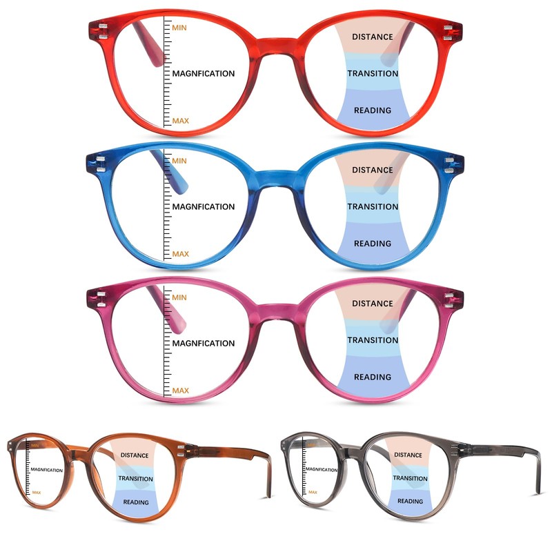 - EXCLUSIVE DESIGN - Progressive multifocus blue light reading glasses have large oval lenses in trendy colors that not only help with reading, but also contour to your face