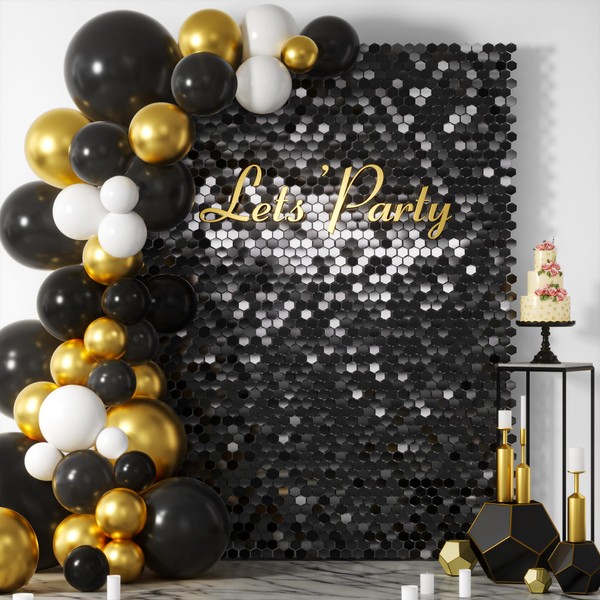 COKAOBE Black Shimmer Wall Backdrop, 24PCS Hexagon Sequin Shimmer Backdrop Panel, Photo Backdrops for Birthday, Anniversary, Wedding, Graduation & Bachelorette Party Decoration