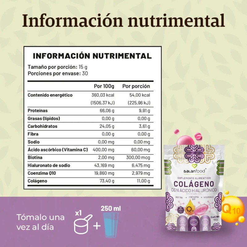 Colageno Con Ácido Hialuronico Biotina Vitamina C Coenzima Sabor Sin Sabor