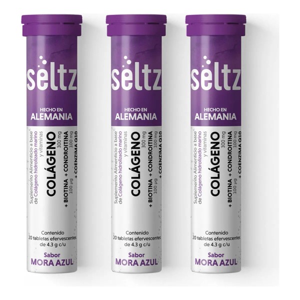 Colágeno + Coq10 + Biotina 3 Pack Seltz Tabs Efervescentes